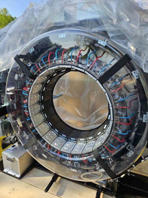 acrylic sphere will be filled with ultrapure water. Over the following six months, the ultrapure water inside the acrylic sphere will be replaced with liquid scintillator, a mixture of linear alkyl