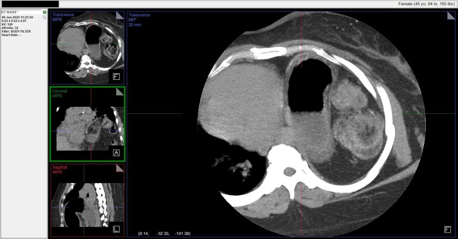 Yes, I believe we found the cause of their shortness of breath (Hint: it's not from CAD).